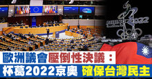 歐洲議會壓倒性決議:杯葛2022京奧 確保台灣民主