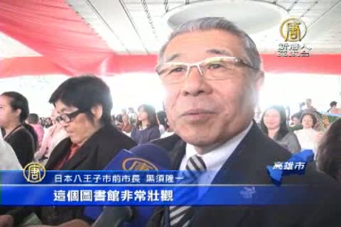 【新唐人亞太台2014年11月13日訊】高雄市立圖書館總館今天(13日)完工啟用,市長陳菊率市府團隊出席啟用典禮,除了感謝企業和民眾踴躍捐贈百萬藏書,也希望合力打造一個愛閱讀的城市。日本八王子市前市長也受邀出席。