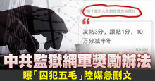 中共監獄網軍獎勵辦法曝「囚犯五毛」陸媒急刪文