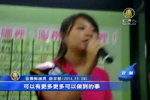 【新唐人亞太台2014年12月3日訊】太陽花運動後,許多青年投入這次選舉,也打出不錯成績,這次選後宜蘭有一位年僅25歲的女議員薛呈懿脫穎而出,通過參選,她希望鼓勵年輕人積極參政,而她也希望藉由進入體制內的機會,積極關注環保和社會議題,讓太陽花精神在宜蘭發光發熱。