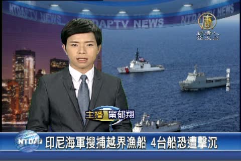 【新唐人亞太台2014年12月19日訊】新聞一開始,先來看到,4艘台灣漁船 驚傳被印尼海軍追捕中。由於印尼政府之前表示,外國漁船若再印尼海域非法捕魚,會驅趕、扣押並炸沉,因此,台灣漁船也可能遭不測,目前漁業署正以衛星定位系統搜尋4艘台灣漁船,並呼籲印尼政府,依國際公約,漁船上有人員在,不可開火,後續消息,我們將為您持續關注。