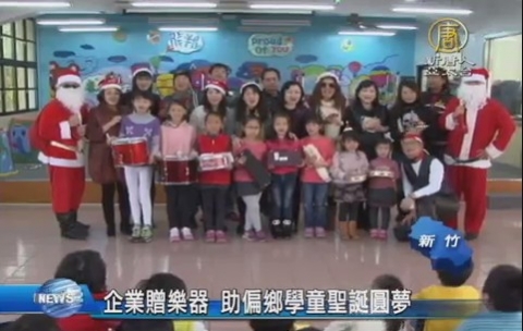 【新唐人亞太台2014年12月25日訊】今天是聖誕節,很多小朋友期待聖誕老人帶來禮物,有企業團體,得知新竹縣偏鄉學童,喜歡演奏,學校卻沒有足夠經費購買樂器,於是號召身邊朋友,一起捐助孩童樂器,一圓他們學音樂的夢想,還扮成聖誕老公公,陪學生們歡度溫馨的聖誕節。
