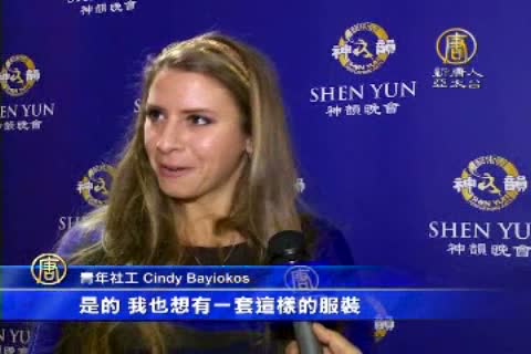 青年社工 Cindy Bayiokos:“我喜歡「長袖仙韻」,非常美。(服飾非常好看)是的,我 也想有一套這樣的服裝。”