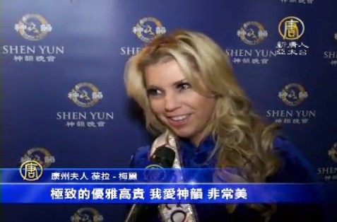 2015-02-12 21:42:57康州2015年國際選美活動中,因多才多藝獲選「康州夫人」 的葆拉.梅麗,日前有機會一償心願,觀賞神韻,她說,神韻演出裡,善的力量,最令她感動。