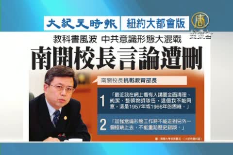 接著看到大紀元時報紐約大都會版報導:教科書風波 中共意識形態大混戰 南開校長言論遭刪。