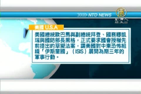 國總統歐巴馬與副總統拜登、國務卿凱瑞與國防部長黑格,正式要求國會授權先前提出的草擬法案,讓美國對中東恐怖組織「伊斯蘭國」(ISIS)展開為期三年的軍事行動。