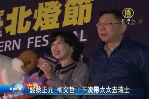【新唐人亞太台2015年2月15日訊】昨天(14日)是西洋情人節,台北市長柯文哲與太太陳珮琪,出席台北燈節點燈儀式,兩人鏡頭前曬恩愛。對於立委蔡正元罷免案不過關,柯文哲說罷免首次闖到最後階段,已經是往前進了一步,還揶揄蔡正元說,下次去瑞士遊湖,應該帶太太一起去。