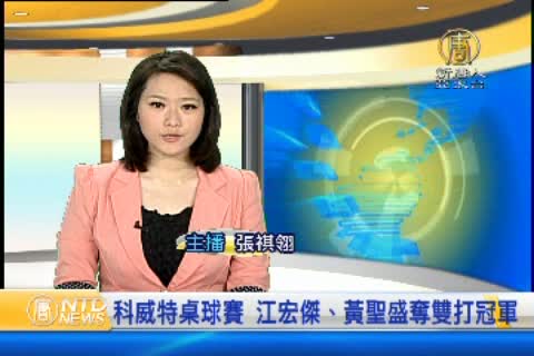 【新唐人亞太台2015年2月16日訊】國際體壇,又傳台灣選手好成績,科威特桌球公開賽,台灣男雙江宏傑和黃聖盛,在決賽中,遭遇實力強勁的中國組合張繼科和許昕,拚鬥4局,最後以13:11力克對手,拿下雙打冠軍。