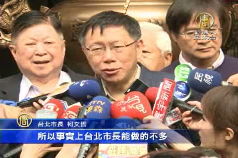 【新唐人亞太台2015年2月23日訊】台北市長柯文哲今天上午到松山發送發財金,面對媒體詢問第二棟房子不准貸款說法,柯文哲坦言那些是 不是很成熟的概念,未來會思考如何逼出空屋,而下月會想辦法讓1000多個聯合開發案的空屋上市。
