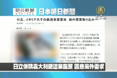 【新唐人亞太台2015年2月25日訊】來看到日本朝日新聞報導:日立併購義大利鐵道業龍頭 因應海外需求
