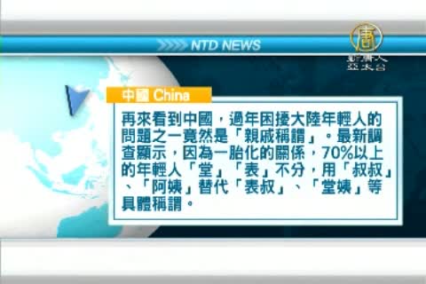 再來看到中國,過年困擾大陸年輕人的問題之一竟然是「親戚稱謂」。最新調查顯示,因為一胎化的關係,70%以上的年輕人「堂」「表」不分,用「叔叔」、「阿姨」替代「表叔」、「堂姨」等具體稱謂。