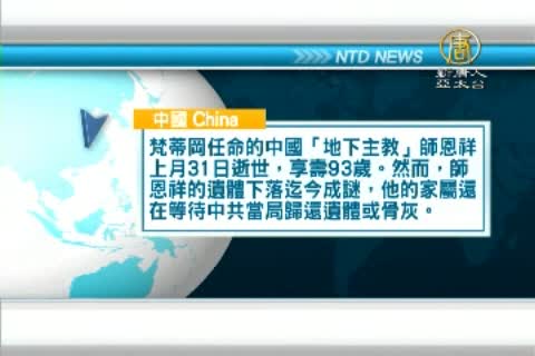 梵蒂岡任命的中國「地下主教」師恩祥上月31日逝世,享壽93歲。然而,師恩祥的遺體下落迄今成謎,他的家屬還在等待中共當局歸還遺體或骨灰。