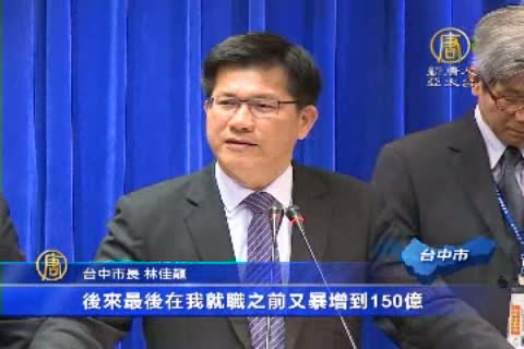 台中市長 林佳龍:「得標之後沒多久,這個數字就浮動這麼大,有50億、100億、120億,又到80億,後來最後在我就職之前又暴增到150億,然後現在經過政風的調查,他們坦承數字是有問題的。」