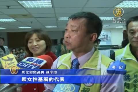 彰化縣議員 賴岸璋:「今天陪我來,包括有我們女性議會的同事,跟女性基層的代表,顯示說,阿璋一樣從基層出身,從代表會到議會,選女性陪我登記第九屆立法委員的選舉,就是表示我們2016年,我們台灣要出第一個女性的總統。」