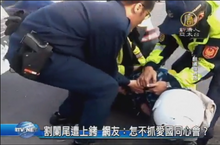 2015-02-12 21:22:58歡迎回到新聞現場。罷免立委蔡正元投票將在本週六舉行,割闌尾計畫的志工,上午在南港街頭舉牌,遇上警方盤查身份,還被要求解散,結果有4名警察壓制其中一位志工,並強行上銬, 壓上警車。這段畫面全都被一旁的志工拍下來Po上網,引起一片熱烈討論,有網友就質疑,愛國同心會囂張跋扈,怎麼不見警察上銬?