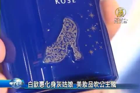 【新唐人亞太台 2015 年 03 月 12 日訊】美妝圈吹公主風,先前電影冰雪奇緣全球熱映,台灣本土美妝品牌推出系列商品,創造銷售佳績。看好這波公主熱潮,已有三十年歷史的日本美妝品牌與電影「仙履奇緣」跨界合作,首度改變瓶身造型推出限量商品,還找來藝人白白代言,化身灰姑娘為品牌站台。