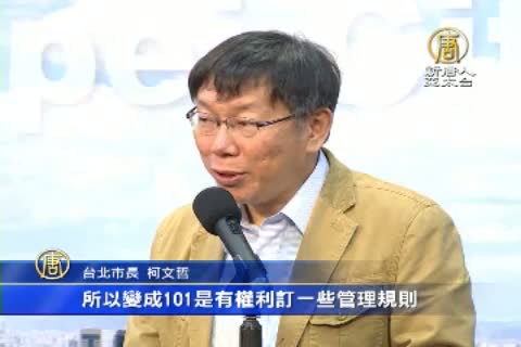 【新唐人亞太台 2015 年 04 月 07 日訊】今天是言論自由日,而持續發酵的議題是,有媒體報導,101大樓表示正擬研議草案,規定每個團體使用101前公共空間時,都必須申請。民意代表及多學者認為,這個做法有違憲之嫌,今天台北市長柯文哲也做出回應。
