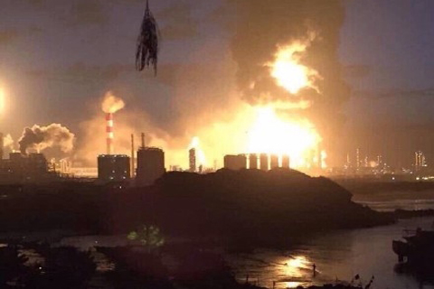 古雷港經濟開發區的古雷石化(PX項目)廠區6日發生爆炸。(網路截圖)