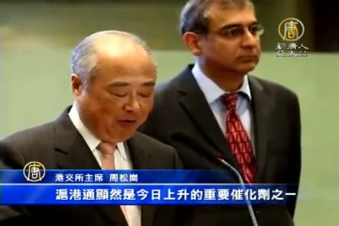 港交所主席周松崗:滬港通顯然是今日大市上升的重要催化劑之一,特別是兩個星期前,大陸釐清機構投資者參與政策,進一步帶動市場氣氛。