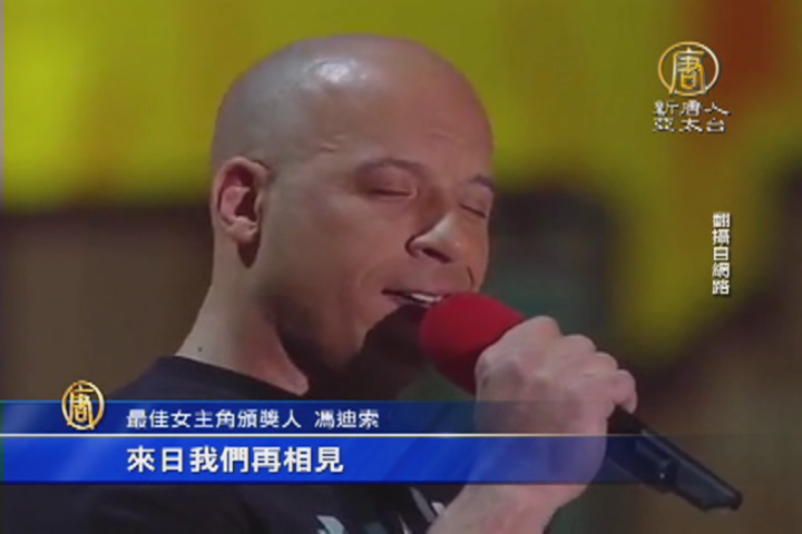 在台上即興獻唱《玩命關頭7》電影配樂中的一曲「See You Again」,馮迪索說,已故好友保羅·沃克(Paul William Walker)上ㄧ次還跟他一起站在舞台上,如今《玩命關頭7》已經成為保羅沃克的遺作,馮迪索真情流露,獲得全場共鳴。