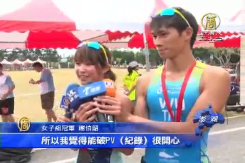 【新唐人亞太台 2015 年 04 月 20 日訊】澎湖上週末(18日)有一場亞洲鐵人三項聯盟挑戰賽,所有選手必須通過游泳、自行車和路跑,完成113公里的挑戰,最後由「警花鐵人」謝伯韶創下個人最佳紀錄,摘下后冠,她的「鐵人情侶檔」吳冠融,也拿下第五名的好成績。