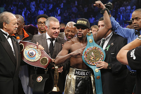 美國拳王梅威瑟118-110, 116-112, 116-112,以點數判定擊敗菲律賓拳王帕奎奧,
