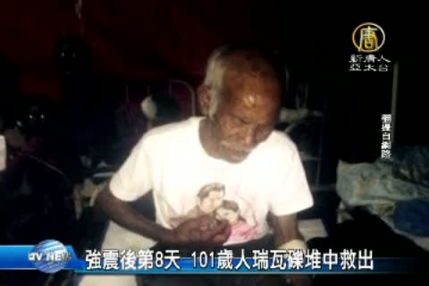 【新唐人亞太台 2015 年 05 月 04 日訊】尼泊爾強震的第八天,就在當局透露很難有生還者時,有好消息傳出,一名年紀高達101歲的人瑞,從自家的倒塌房屋殘骸中,被救了出來。這名獲救的老翁,脫險時身上只有一些輕傷,已經由直升機送到地區醫院治療。印度媒體報導,獲救老翁自稱,吃麵粉和喝身旁容器中的水得以存活。同天,在尼泊爾東北部也救出2女1男,是救援一大進展。