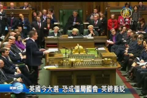 【新唐人亞太台 2015 年 05 月 07 日訊】早安新唐人,先帶您關心,英國即將在台北時間,今天下午兩點,舉行國會選舉投票,選前最後民調顯示,朝野兩大黨,保守黨和工黨依然勢均力敵,接下來,可能會面臨組聯合政府的結果,而市場普遍,認為選後英鎊的風險高,多家重量級機構選前都減少持有英鎊,彭博資訊更預測6月底,英鎊兌美元將再貶4%。