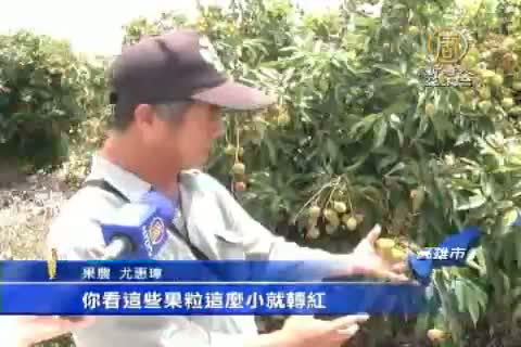 【新唐人亞太台 2015 年 05 月 13 日訊】每年5月中下旬到六月,是玉荷包荔枝的盛產的季節,今年台灣面臨60年來嚴重的乾旱,雖然近日因颱風「紅霞」鋒面影響,有降些微的降雨量,但因日前缺水太久,預估今年玉荷包的收成將減20% 。