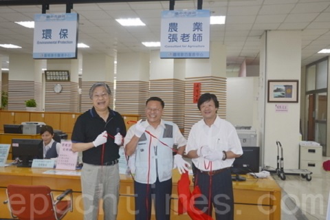 (大紀元記者賴瑞台灣台中報導)台中市政府農業局為全方位服務農民, 19 日上午由農業局長王俊雄、台中市農會總幹事蔡政郎與中興大學蔡東纂教授,共同為設於豐原區陽明大樓1樓聯合服務中心的「農業張老師」揭牌啟用。農民朋友有經營管理、栽培技術問題或其他申辦業務,都可到農業張老師諮詢服務櫃台由專人服務。