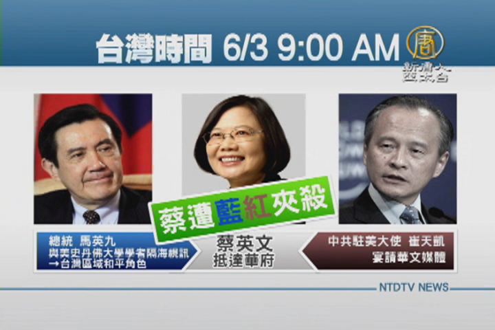 對即將出訪美國的蔡英文,送上祝福,立法院長王金平認為,溝通得好有助於台美關係,不過蔡英文抵達華府當天,總統馬英九,也安排了要和美方學者視訊,談的是,台灣區域和平角色。而中共駐美大使,也在同一時間,宴請華文媒體,媒體形容,蔡英文是遭到藍紅輪番夾殺。