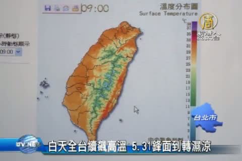 【新唐人亞太台 2015 年 05 月 30 日訊】天氣真的好熱!台北高溫,不到中午就飆到35.6度,台東大武甚至飆破36度。不過,隨著新一波鋒面報到,5月31日清晨,中部以北和東北部,就會開始下雨,但影響時間不長,週二又會恢復高溫炎熱的天氣。