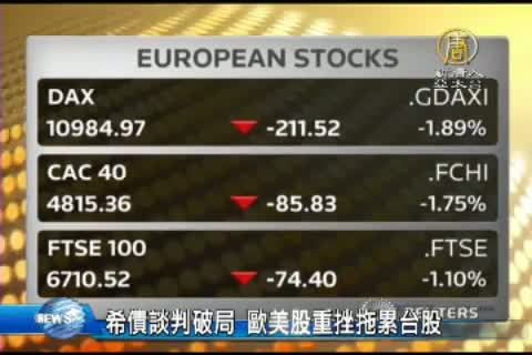 【新唐人亞太台 2015 年 06 月 16 日訊】希臘與債權機構的「最後關頭」談判破裂,距離「最終攤牌」更近一步,不但導致歐美股市昨天大跌,今天台股也受到影響,雖然以小紅開出,不過大盤隨後走勢向下,盤中一度摜破9200點,收盤時下跌46.70點,加權指數收在9212.78點,跌幅0.50%。