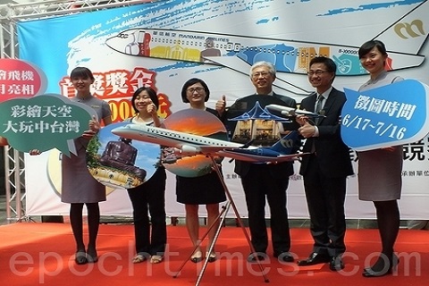 (大紀元記者黃玉燕台灣台中報導)繼日前香港旅展「中台灣旅遊館」揭幕後,中彰投三縣市再次聯手,與華信航空推出彩繪飛機徵圖比賽,獲首獎的圖騰意象,10月開始,將彩繪在香港及亞洲航線波音737-800型客機上,為中彰投觀光旅遊代言。華信航空總經理韓梁中表示,希望透過比賽找到代表中台灣的簡潔圖騰,不論飛往哪裡,大家都能遠遠就看見中台灣。