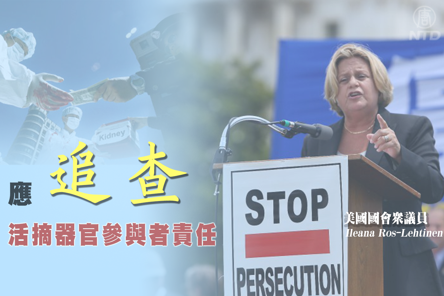 美國國會眾議員Ileana Ros-Lehtinen:「中共針對平和的法輪功學員們進行非常嚴重的歧視、折磨和迫害。大量證據表明,中共當局參與摘除法輪功學員的器官,併進行販賣。我們必須制止這種殘酷暴行。」