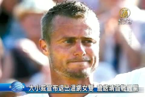 【新唐人亞太台 2015 年 07 月 02 日訊】再來關心溫布頓網球賽消息,生涯最後一次征戰溫網的「澳洲野兔」休威特,在第1輪就出局,走出球場、向球迷揮手致意,他賽後表示,自己不會輕易掉下眼淚。另外,威廉絲姐妹宣布退出女子雙打,表示要更專注在女子單打比賽,而在台灣選手部分,詹皓晴與德國搭檔,只用了56分鐘就拿下勝利,不過,莊佳容、詹謹瑋都已淘汰出局。
