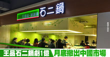2017-10-26 13:59:31再來看到,王品集團宣布,旗下石二鍋,將退出中國市場,16家門市將在10月底結束營業。王品表示,石二鍋對於經營條件標準的堅持,包括在食材、食安、服務的要求,導致競爭困難,難以在大陸市場有效發揮。王品中國事業群今年前9月營收占比41%。依據今年上半年財報,石二鍋累積虧損,達新台幣1億元。