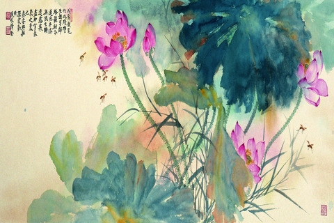 荷花工蜂Lotus and Bee 孫家勤Sun Jia Chin 53 x138cm