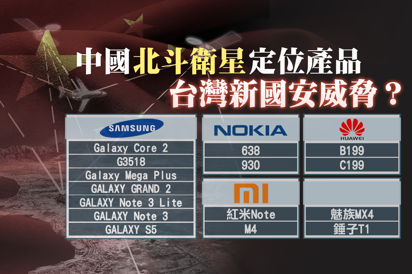 今年7月,中共最新發射的兩顆北斗導航衛星,自製率達到98%,顯示自主研發的全球衛星導航系統日漸成熟。據《自由時報 》引述政府官員說法表示,目前中國 已經開放北斗衛星定位系統的商業運用,也有多款產品已在台銷售,如果軍政要員持有北斗衛星定位功能的手機,或使用支援該定位系統的車輛,個人行蹤就會輕易遭到中共掌握,有國安疑慮。