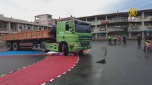輪胎轉彎「氣球爆裂」大卡車入校宣導視線死角
