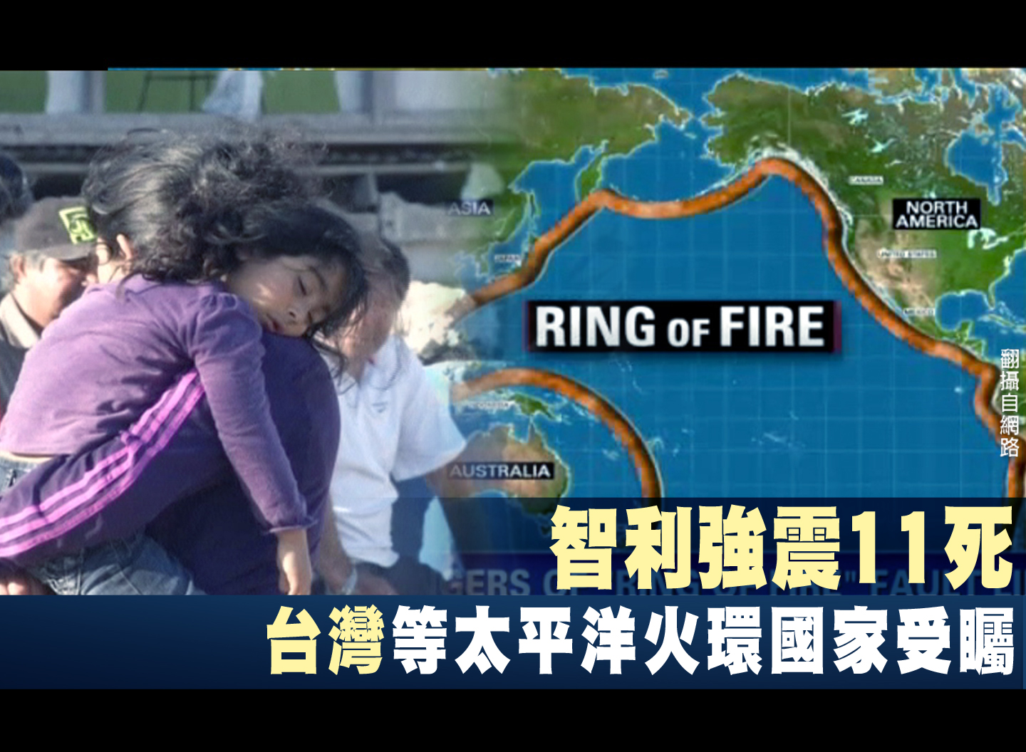 【新唐人亞太台 2015 年 09 月 18 日訊】禮拜三發生的智利芮氏八點三強震,導致11人死亡,超過百萬人逃離家園。緊接而來,還有餘震和海嘯,嚴重的災情也使得位於地震帶上,太平洋火環國家備受矚目。