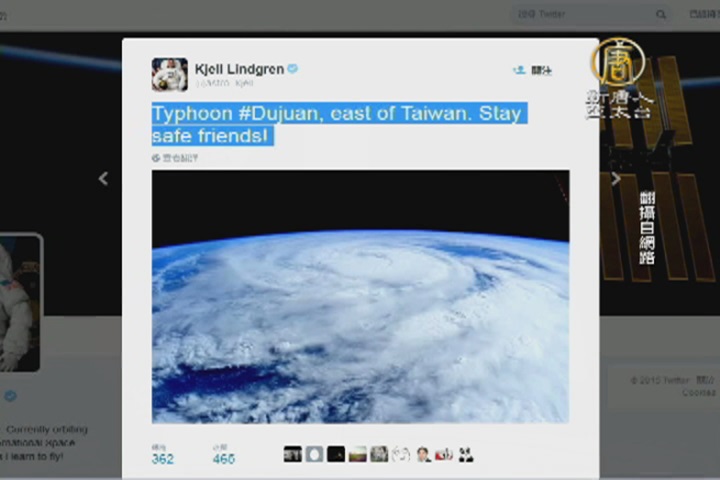 【新唐人亞太台 2015 年 09 月 28 日訊】杜鵑颱風即將席捲台灣,有鑑於上個月侵襲台灣的蘇迪勒(Soudelor)颱風造成的災情,台灣各地政府皆嚴陣以待。許多國際主流媒都密切關注杜鵑颱風的動向。連身處在國際太空站的太空人,都在推特發文,關心台灣。
