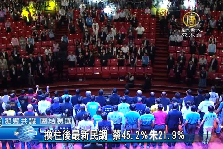 【新唐人亞太台 2015 年 10 月 18 日訊】國民黨臨全會換柱後,我們來看到兩黨最新民調消漲。兩岸政策協會今天公布最新民調,「泛藍」選民挺朱立倫的比例增加了7.8%,未表態者下降11.8%,顯示國民黨陣前換將,看到效果;不過,整體而言,民進黨蔡英文仍以45.2%支持率,勝過朱立倫的21.9%。