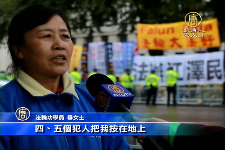 【新唐人亞太台 2015 年 10 月 22 日訊】就在習近平與卡麥隆在首相府會面的同時,場外也有法輪功學員和平表達訴求。曾經被中共江澤民集團非法迫害的法輪功學員,也講述了他們被迫害的經歷。