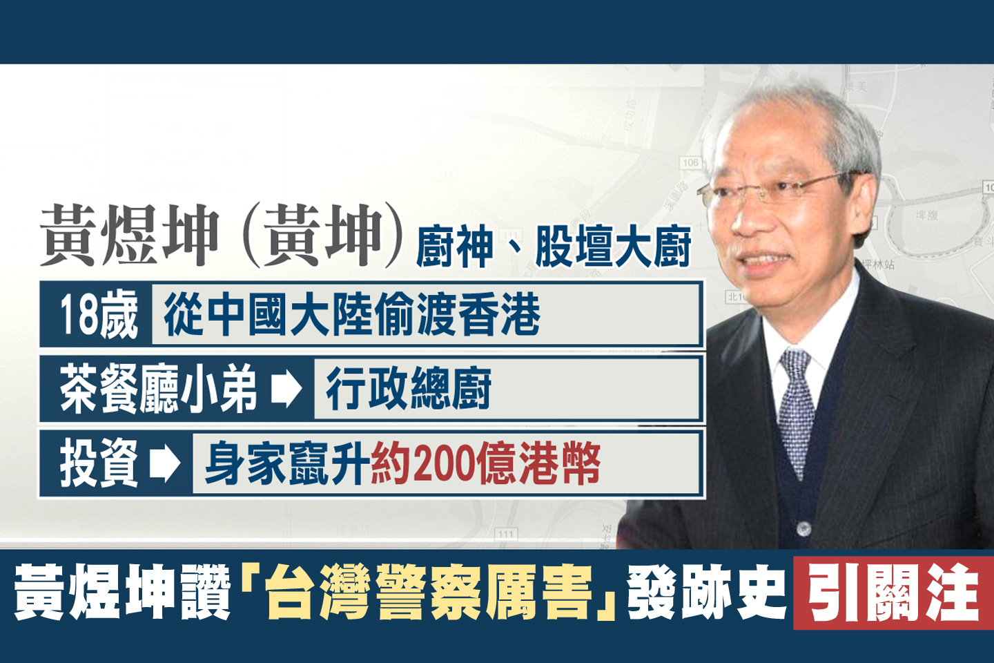 68歲的黃煜坤,外號有廚神或是股壇大廚之稱,18歲時,從中國大陸偷渡到香港,先從茶餐廳小弟做起,後來晉升行政總廚,又靠著投資手腕,身價竄升約200億港幣,相當於千億台幣。然而,黃煜坤後來被質疑在收購美國天然氣油田時,涉嫌詐騙、洗黑錢,2013年成為香港廉政公署的約談名單,遭到起訴後以500萬保釋。