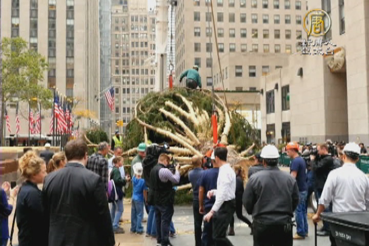 「今天,紐約市洛克斐勒中心迎來了高78、直徑47英呎的挪威雲杉,這棵樹在洛克斐勒廣場立起來之後,將在12月2號舉行聖誕節點燈儀式。」