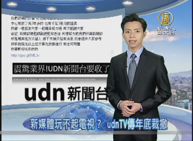 【新唐人亞太台 2015 年 11 月 07 日訊】台灣的媒體環境,是否注定讓新媒體被排拒在目前的電視生態之外?新聞最聚焦要帶您來關注,聯合報系旗下的udn TV,期望在數位匯流時代,提供多樣化的內容與多平台載具的應用,不過,日前竟從udn TV內部意外傳出消息,由於財務問題,將裁掉整個節目部,打算關掉udn TV。儘管聯合報社長項國寧,向外界澄清,沒有要關掉udn TV,只是內容會做一些「小調整」,但也再次凸顯了,台灣現在有線電視業者獨大的現象,與惡劣的媒體發展環境。