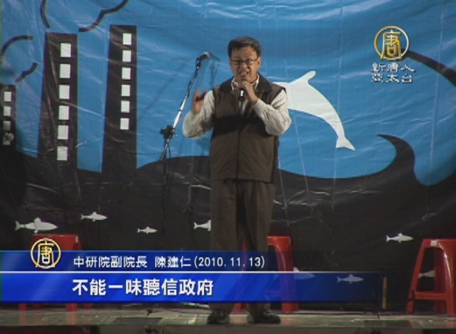 中研院副院長 陳建仁(2010.11.13):「要好好地把關,所以我在這裡呼籲,所有環境影響評估的學者,應該要有正義,應該要有公平,要用科學的證據,不能一味聽信政府,你們說對不對。」