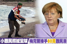 2015-09-04 12:55:56歐洲難民潮愈演愈烈,週四,一張3歲男童逃難途中遇難的照片,引發國際爭論。德國總理梅克爾也宣布,將接納80萬難民進入德國,並呼籲各國共同接納這波難民潮。