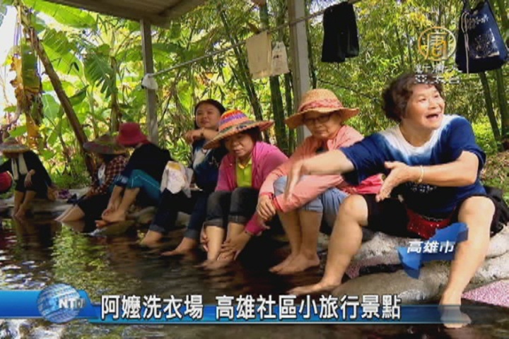 【新唐人亞太台 2015 年 12 月 19 日訊】早年農村社會,不少阿嬤們會蹲在溪流旁邊洗衣服,現在這種阿嬤的洗衣場居然轉變成為社區觀光的亮點,這是在高雄杉林的集來社區,洗衣場原本是湧泉的灌溉溝渠,現在還有居民來洗衣服,也有觀光客來觀光。
